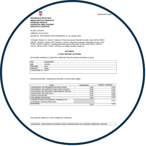 Ovjereni prijevod potvrde o visini dohotka i primitaka